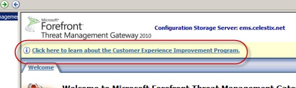 After installing Forefront Threat Management Gateway (TMG) 2010, open the management console and you will see a link inviting you to learn more about the program.