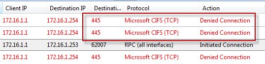 Recently I encountered an issue when after installing and configuring Microsoft Forefront Threat Management Gateway 2010 (TMG) I was unable to gather performance data remotely. I found this puzzling because I was able to perform other management tasks such as connecting remotely with RDP and the TMG management console without issue. Since my management workstation was a member of the Remote Management Computers network object for the array, I assumed that I would have sufficient access to perform this task. Looking at the access logs revealed something interesting; traffic on TCP port 445 from my management workstation was being denied.