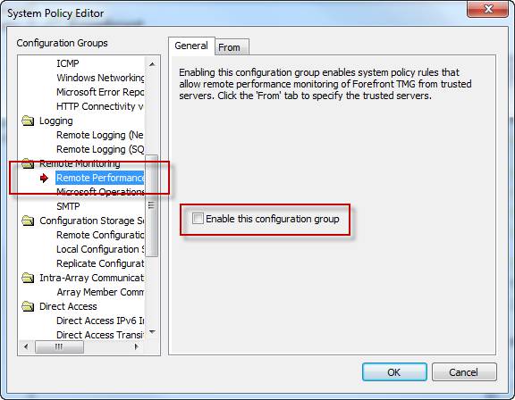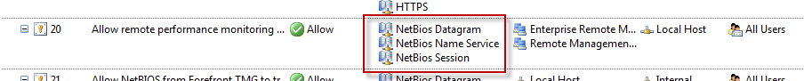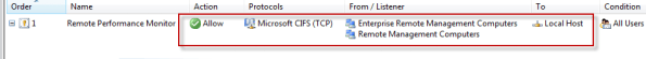 This may not be desirable because the rule includes additional protocols that aren’t required for remote performance monitor data collection, and increases exposure of services running on the TMG firewall needlessly.