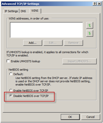 To understand why monitoring performance remotely fails when NetBIOS over TCP/IP is disabled requires an understanding of Server Message Block (SMB) communication. SMB is an application-layer protocol that uses TCP for transport layer communication. In Microsoft operating systems prior to Windows 2000, all SMB communication took place over NetBIOS, which in turn ran on top of TCP/IP using the familiar TCP port 139. Beginning with Windows 2000, SMB runs directly on top of TCP/IP using TCP port 445. In Windows 2000 and later, the default behavior of SMB communication is to attempt to communicate directly over TCP/IP using TCP port 445 first, then if there is no response, an attempt to use NetBIOS over TCP/IP is made using TCP port 139 (provided NetBIOS has not been explicitly disabled). The performance monitor utility (perfmon.exe) communicates in exactly this way. Since NetBIOS over TCP/IP was disabled, communication only takes place over TCP port 445. In the absence of an access rule allowing Microsoft CIFS (TCP) inbound to the local host, the communication fails.