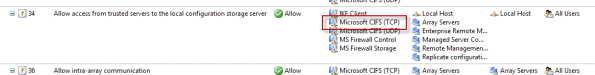 Another option is to enable the Allow access from trusted servers to the local configuration storage server system policy rule, as this rule allows Microsoft CIFS (TCP) protocol inbound to the local host.