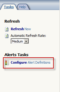 Select the alerts tab and in the tasks pane click the Configure Alert Definitions link.