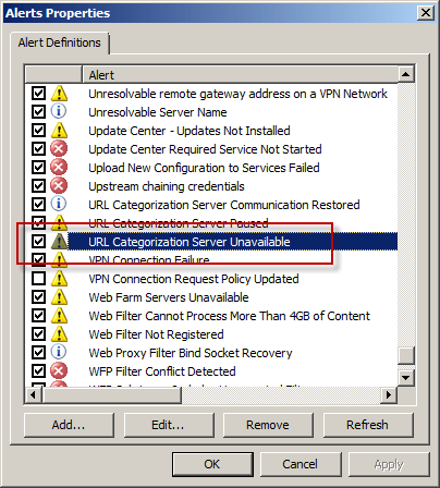 Highlight the URL Categorization Server Unavailable alert and choose Edit…