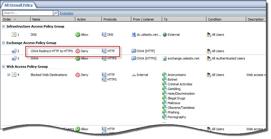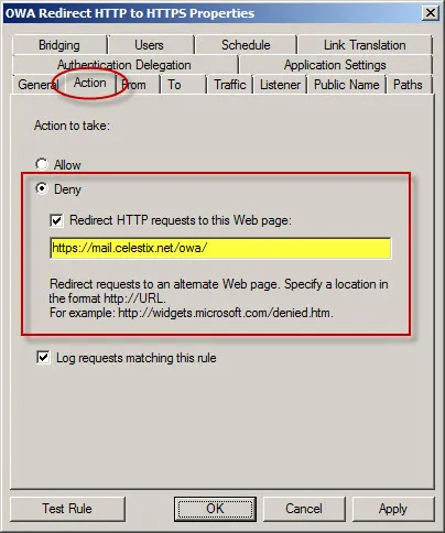 Now when users request the non-secure http://mail.celestix.net/ they will automatically be redirected to the secure https://mail.celestix.net/owa/.
