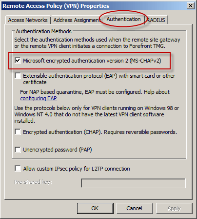 Addressing Security Issues with PPTP VPN in Forefront TMG 2010